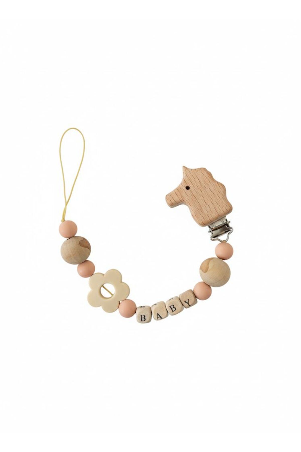 Doğal Ahşap Emzik Zinciri Bebek Emzik Askısı Ve Tutucu Klips